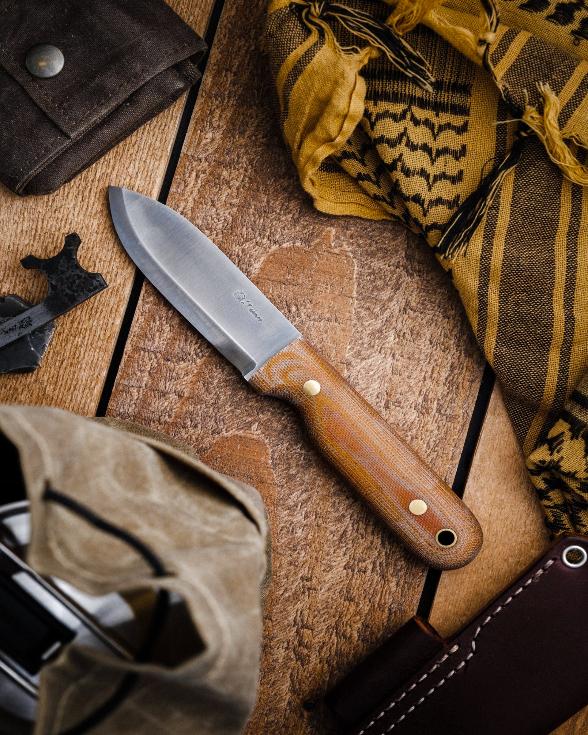The original Bushcrafter has returned with an updated scandi grind! At the heart of this knife is a piece of 1/8 inch O1 tool steel. This is a steel you can sharpen easily in the field, will strike with a flint and light char cloth, and comes with our world renowned scandi edge.